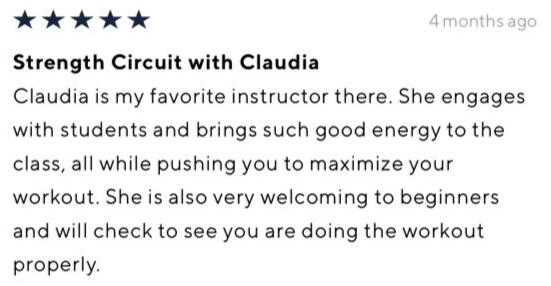 I’m Claudia! Thank you for checking out my website. I’m a fitness instructor based in Charlotte, NC, specialized in Sculpt, Strength, and Cycling. I teach in-person classes, host fitness events around Charlotte, and now you can also find my classes online through Patreon.I’m passionate about leading group classes that welcome all ages and abilities. My workouts are designed to be a fun challenge for everyone—the kind of class you just have to try! I always make sure you get the best workout possible while having fun along the way.