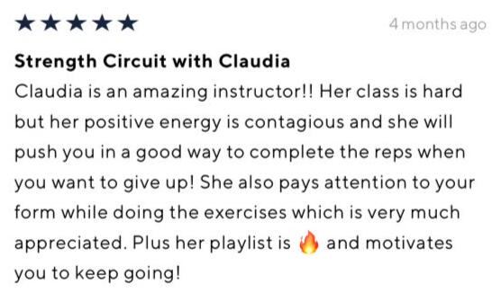 I’m Claudia! Thank you for checking out my website. I’m a fitness instructor based in Charlotte, NC, specialized in Sculpt, Strength, and Cycling. I teach in-person classes, host fitness events around Charlotte, and now you can also find my classes online through Patreon.I’m passionate about leading group classes that welcome all ages and abilities. My workouts are designed to be a fun challenge for everyone—the kind of class you just have to try! I always make sure you get the best workout possible while having fun along the way.